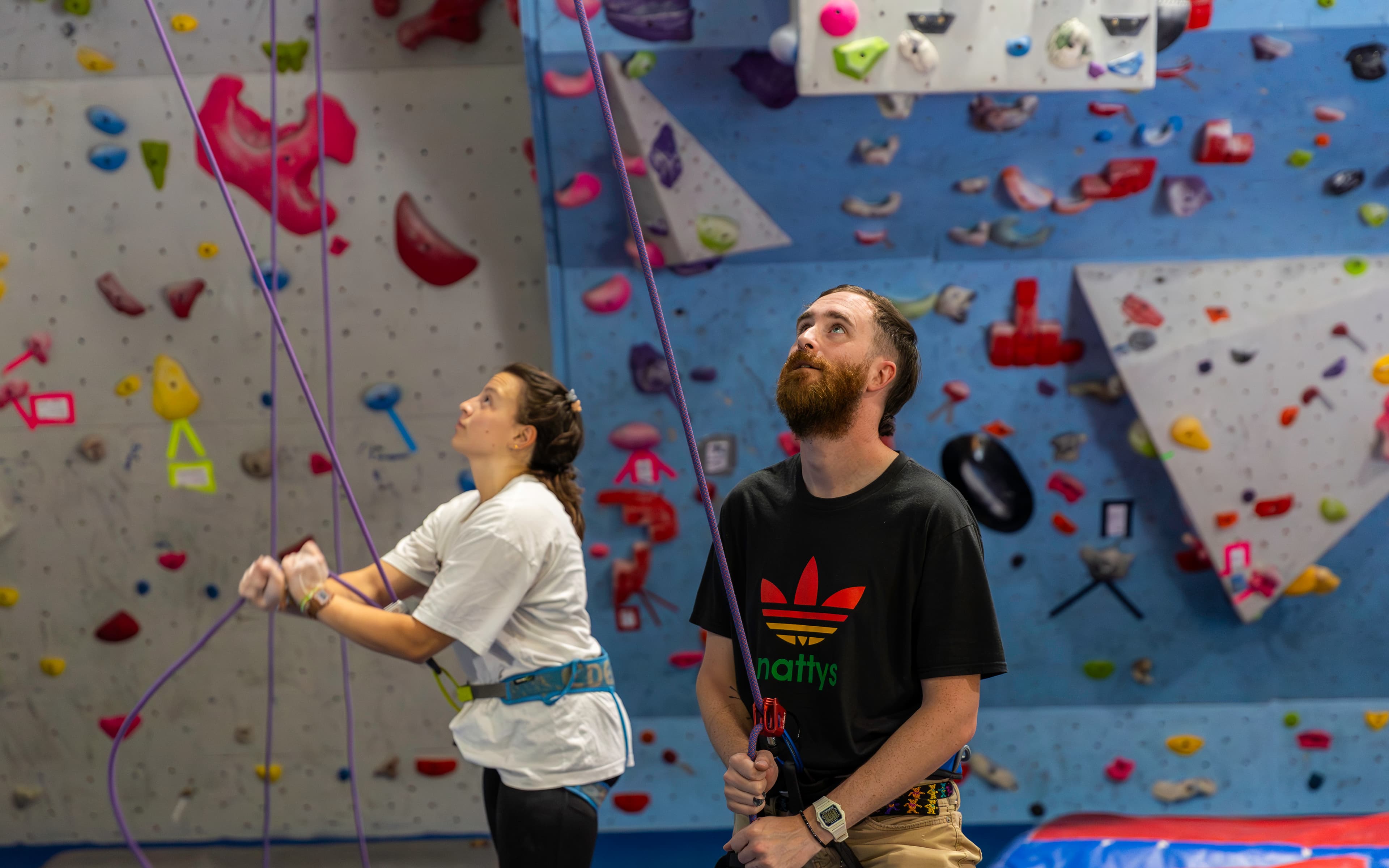 Wear athletic clothing, and if you don’t have climbing shoes, no worries – we’ve got rentals! Don’t forget socks if you’re renting shoes.